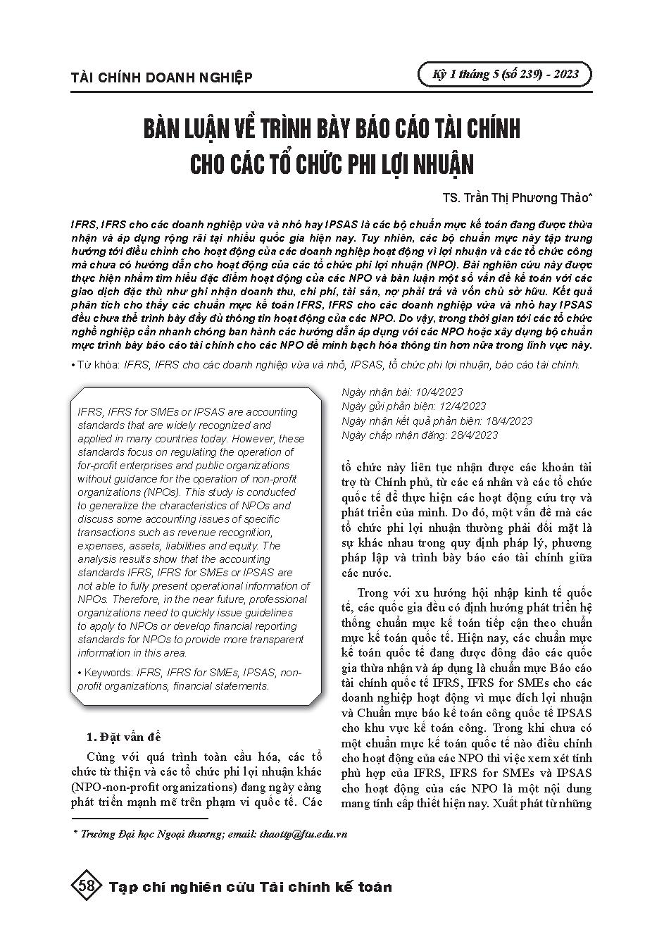 Bàn luận về trình bày báo cáo tài chính cho các tổ chức phi lợi nhuận = Discussion on the financial reporting for non-profit organizations