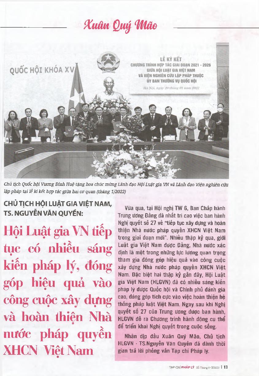 Hội Luật gia VN tiếp tục có nhiều sáng kiến pháp lý, đóng góp hiệu quả vào công cuộc xây dựng và hoàn thiện Nhà nước pháp quyền XHCN Việt Nam