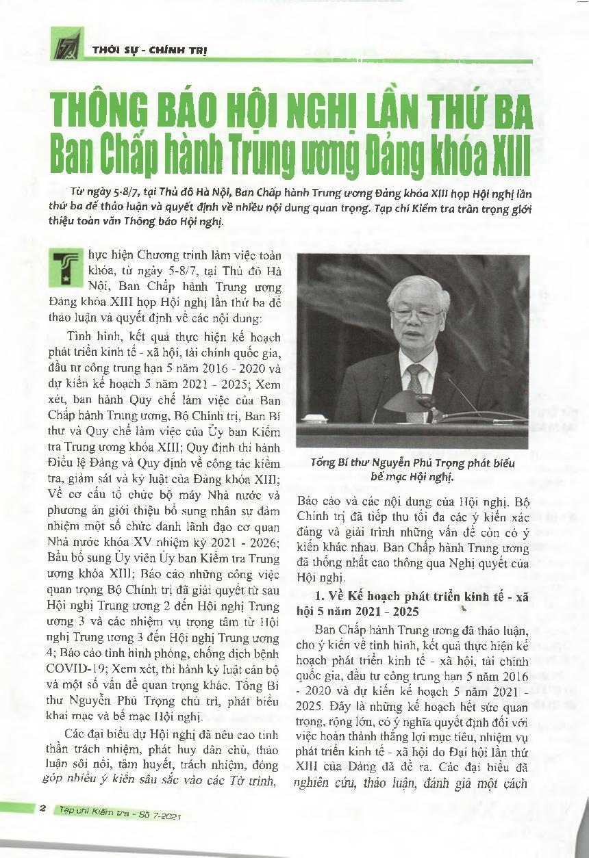 Thông báo Hội nghị lần thứ ba Ban Chấp hành Trung ương Đảng khóa XIII