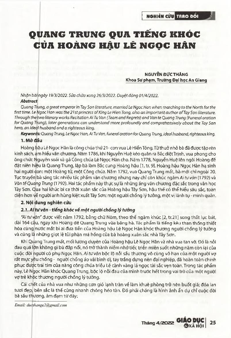 Quang Trung qua tiếng khóc của Hoàng hậu Lê Ngọc Hân = The image of Quang Trung through Queen Le Ngoc Han&; 39;s weeping literary works.