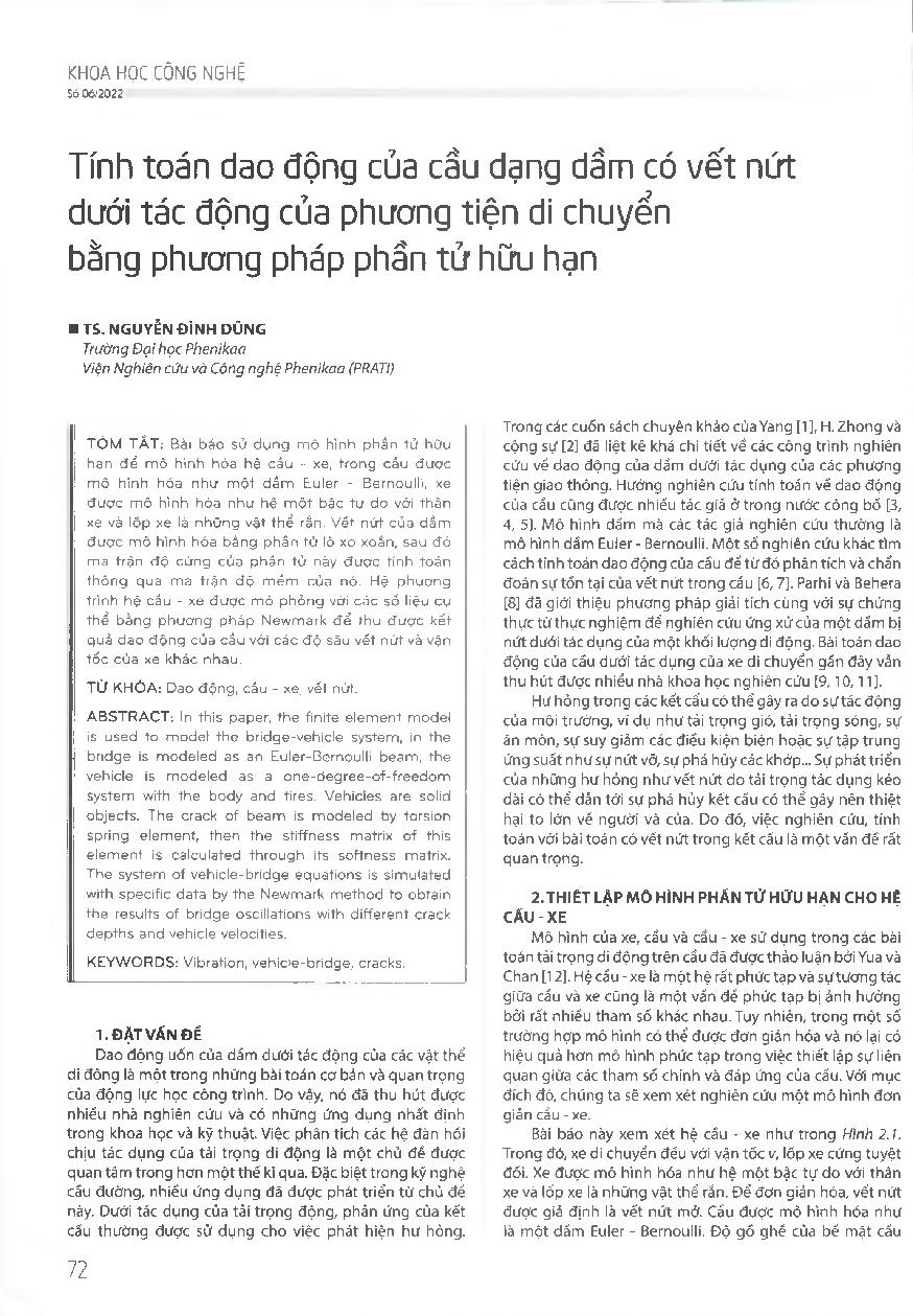 Tính toán dao động của cầu dạng dầm có vết nứt dưới tác động của phương tiện di chuyển bằng phương pháp phần tử hữu hạn = Calculating the vibration of girder bridges with cracks under the action of moving vehicles by finite element