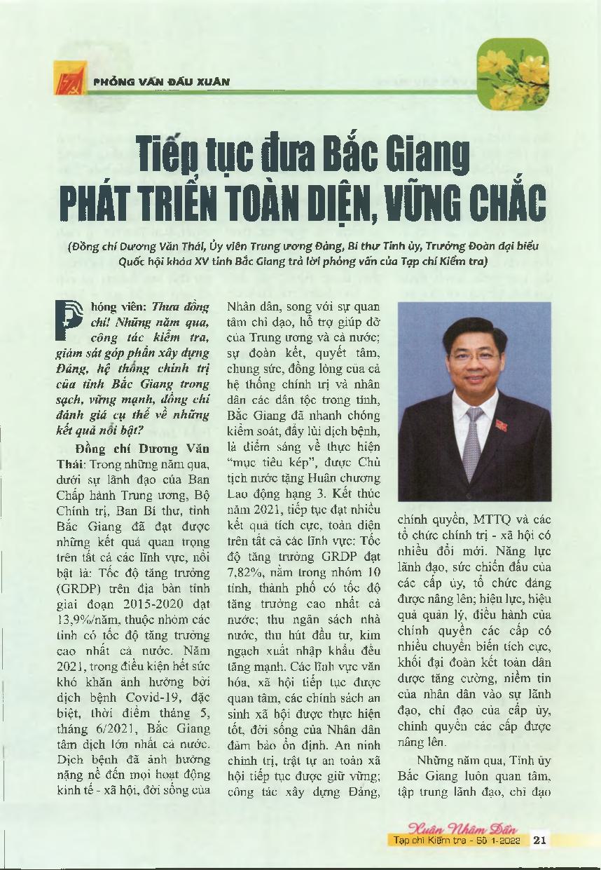 Tiếp tục đưa Bắc Giang phát triển toàn diện, vững chắc