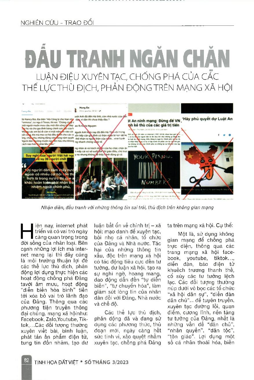 Đấu tranh ngăn chặn luận điệu xuyên tạc, chống phá của các thế lực thù địch, phản động trên mạng xã hội