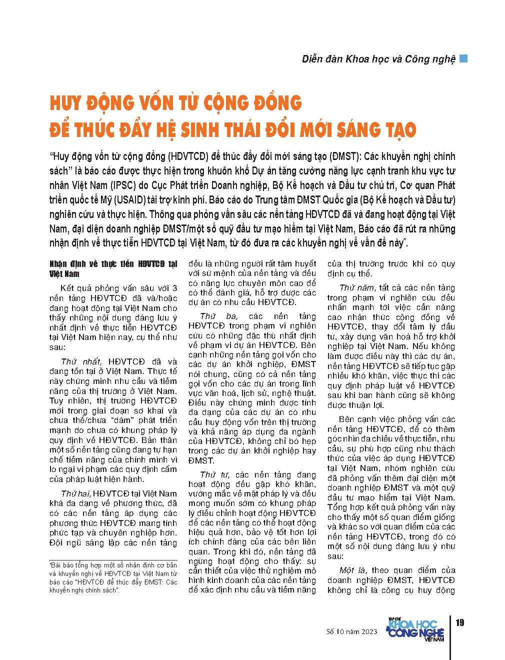 Huy động vốn từ cộng đồng để thúc đẩy hệ sinh thái đổi mới sáng tạo