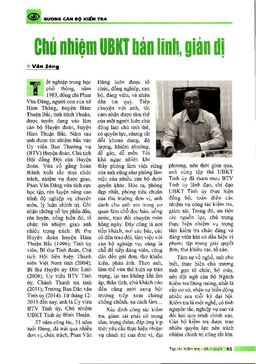 Chủ nhiệm UBKT bản lĩnh, giản dị