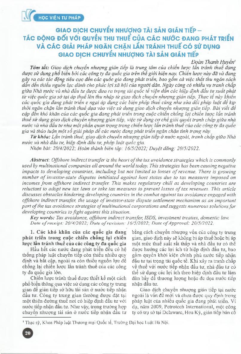 Giao dịch chuyển nhượng tài sản gián tiếp - Tác động đối với quyền thu 20 thuế cùa các nước đang phát triển và các giải pháp ngăn chặn lẩn tránh thuế có sử dụng giao dịch chuyển nhượng tài sản gián tiếp = Indirect property transferring transaction-impact