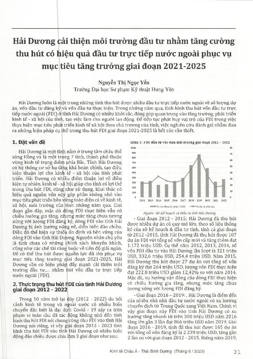Hải Dương cải thiện môi trường đầu tư nhằm tăng cường thu hút có hiệu quả đầu tư trực tiếp nước ngoài phục vụ mục tiêu tăng trưởng giai đoạn 2021-2025