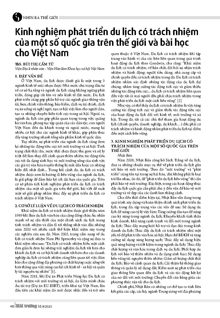 Kinh nghiệm phát triển du lịch có trách nhiệm của một số quốc gia trên thế giới và bài học cho Việt Nam