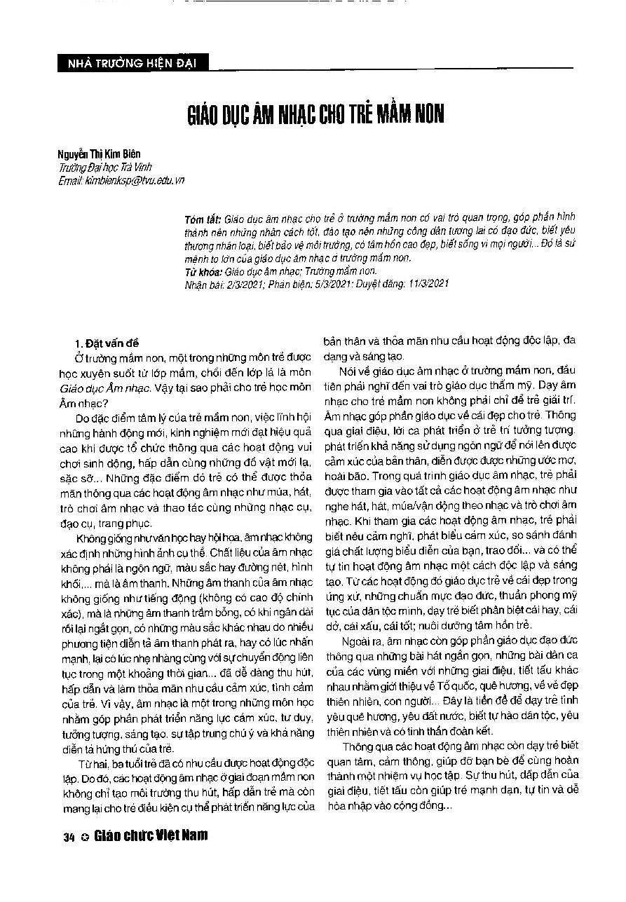 Giáo dục âm nhạc cho trẻ mầm non = Music education for preschool children
