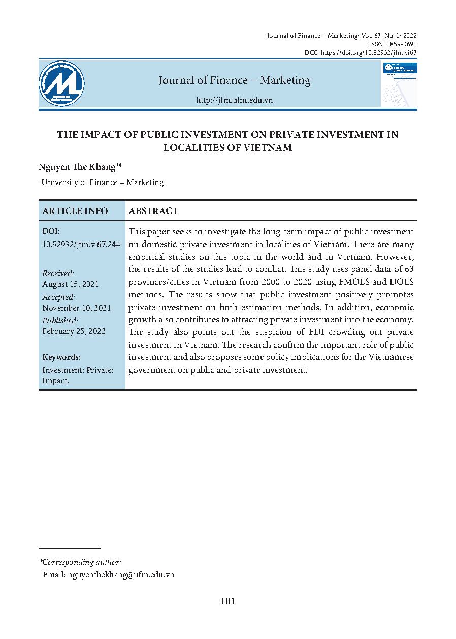Tác động của đầu tư công đối với đầu tư tư nhân ở các địa phương của Việt Nam = The impact of public investment on private investment in localities of Vietnam