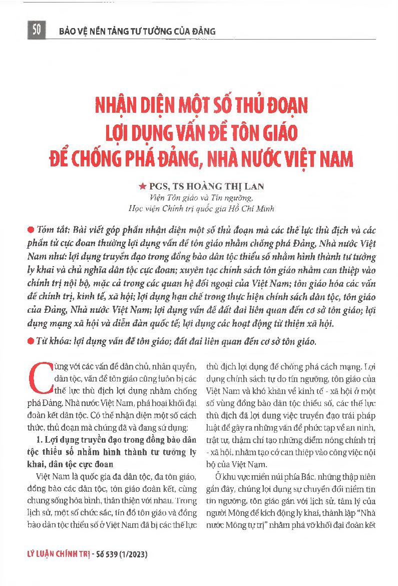 Nhận diện một số thủ đoạn lợi dụng vấn đề tôn giáo để chống phá Đảng, Nhà nước Việt Nam