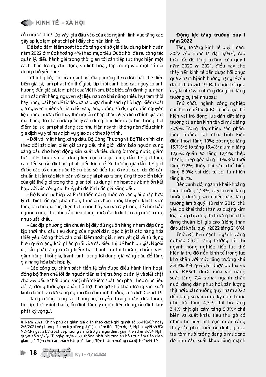 Động lực tăng trưởng quý I năm 2022 và khuyến nghị đối với mục tiêu tăng trưởng năm 2022