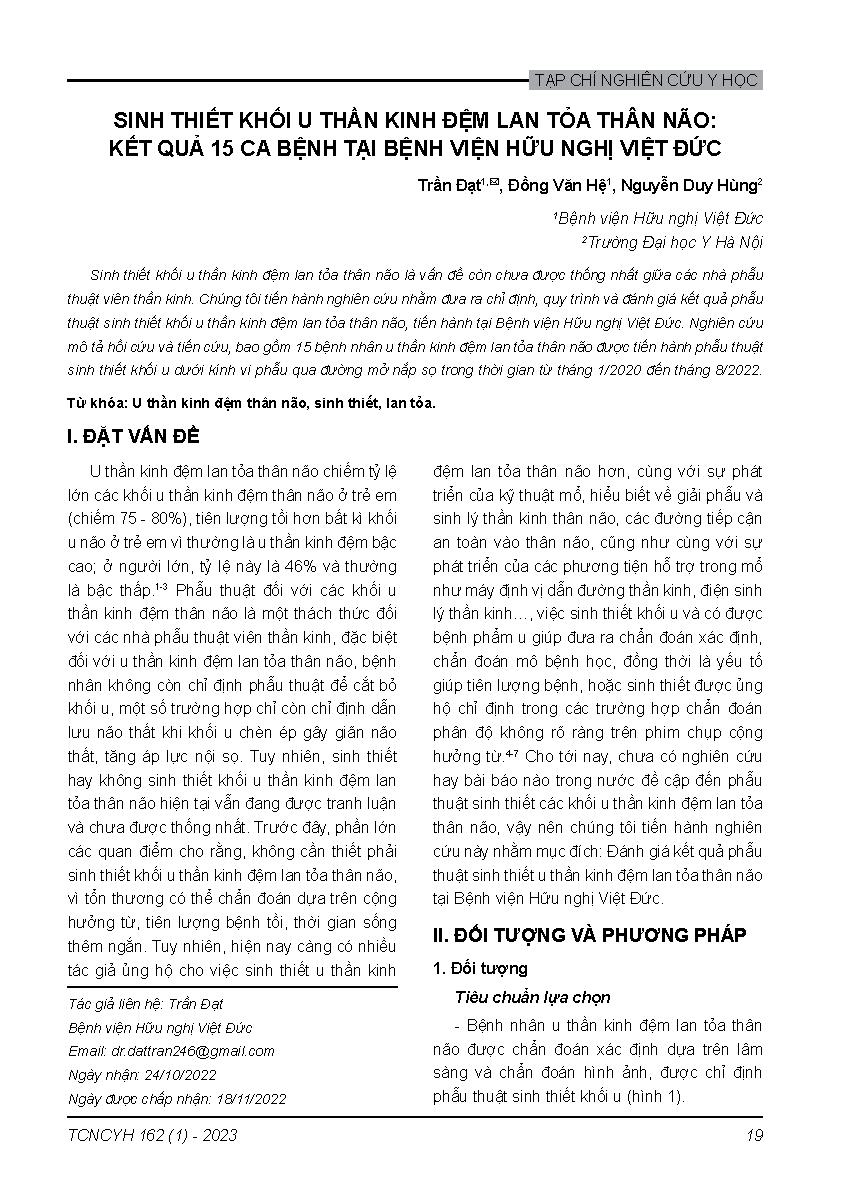 Sinh thiết khối u thần kinh đệm lan tỏa thân não: Kết quả 15 ca bệnh tại Bệnh viện Hữu nghị Việt Đức