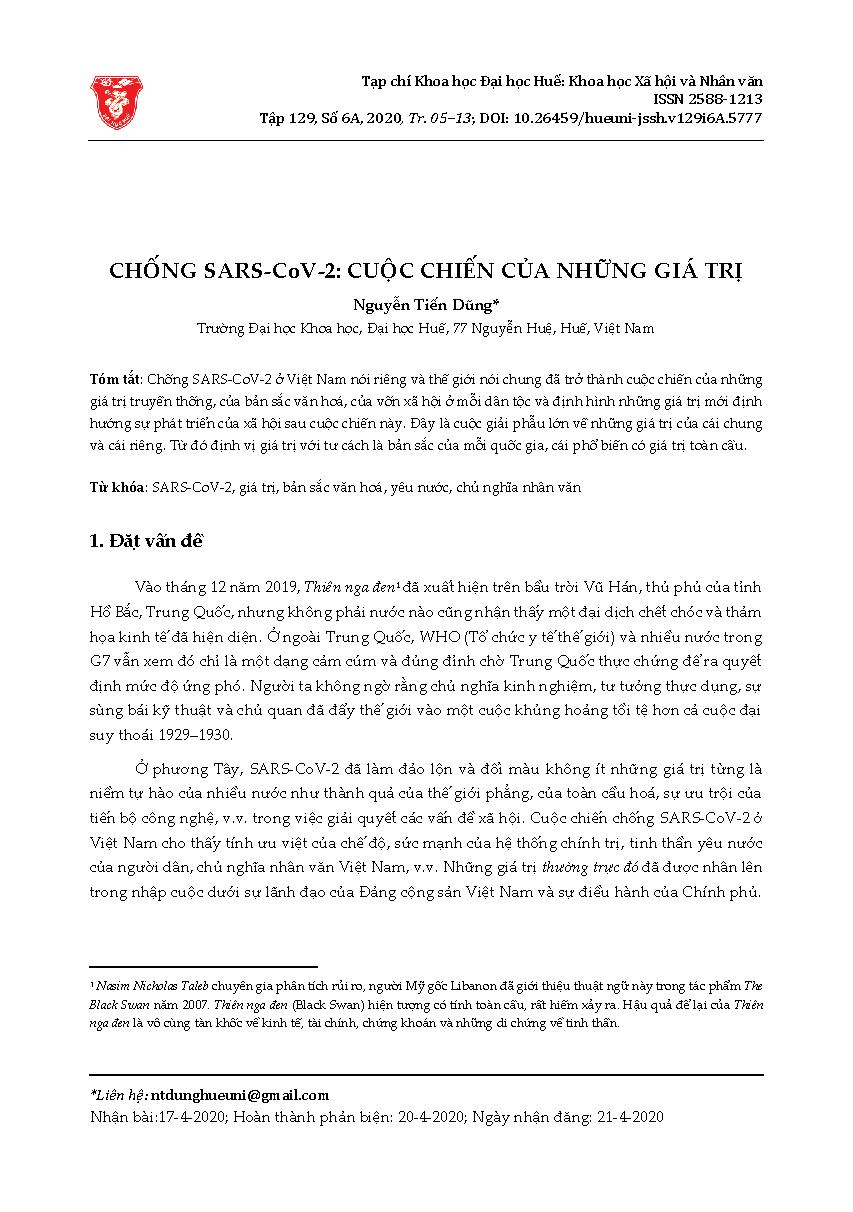 Chống SARS-CoV-2: cuộc chiến của những giá trị = Fighting SARS-CoV-2: The battle of values