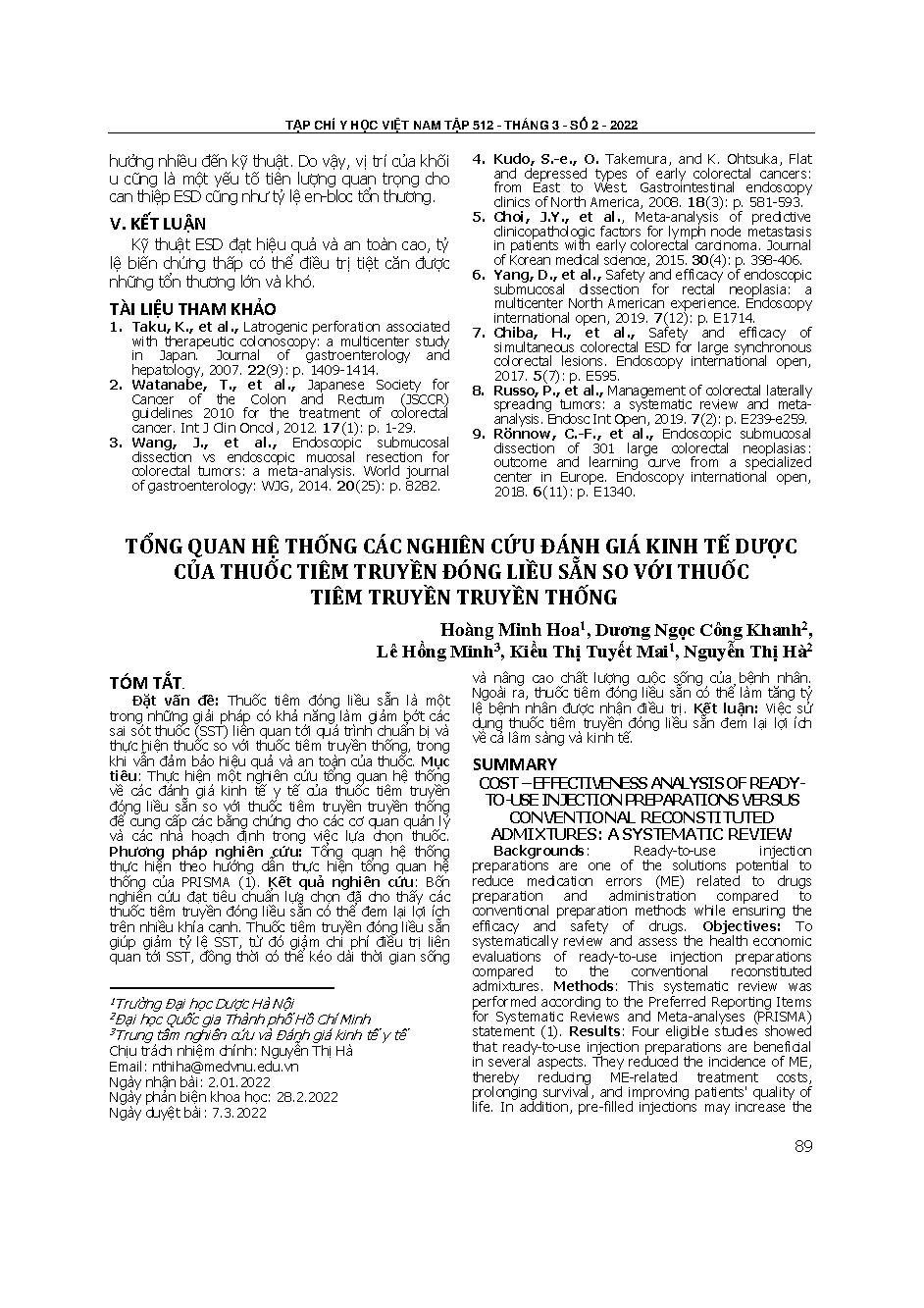 Tổng quan hệ thống các nghiên cứu đánh giá kinh tế dược của thuốc tiêm truyền đóng liều sẵn so với thuốc tiêm truyền truyền thống = Cost – effectiveness analysis of ready-to-use injection preparations versus conventional reconstituted admixtures:
