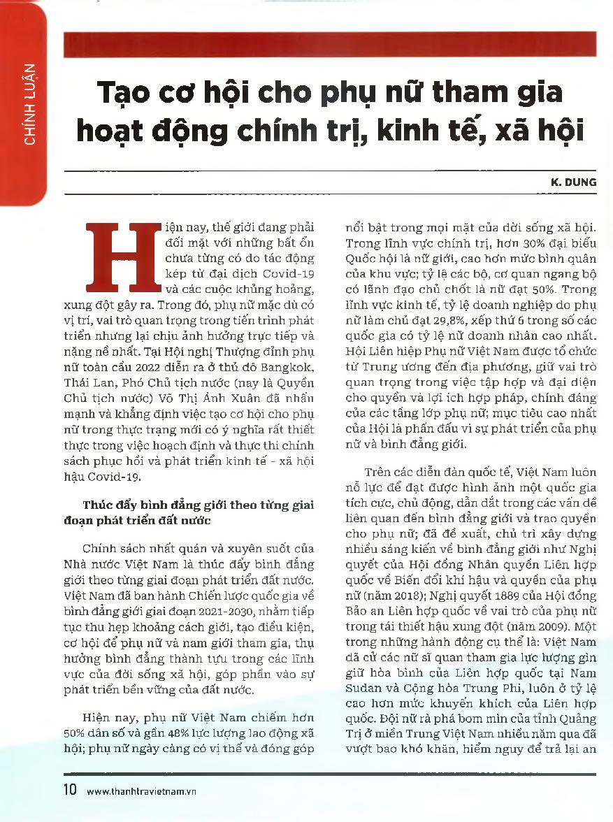 Tạo cơ hội cho phụ nữ tham gia hoạt động chính trị, kinh tế, xã hội