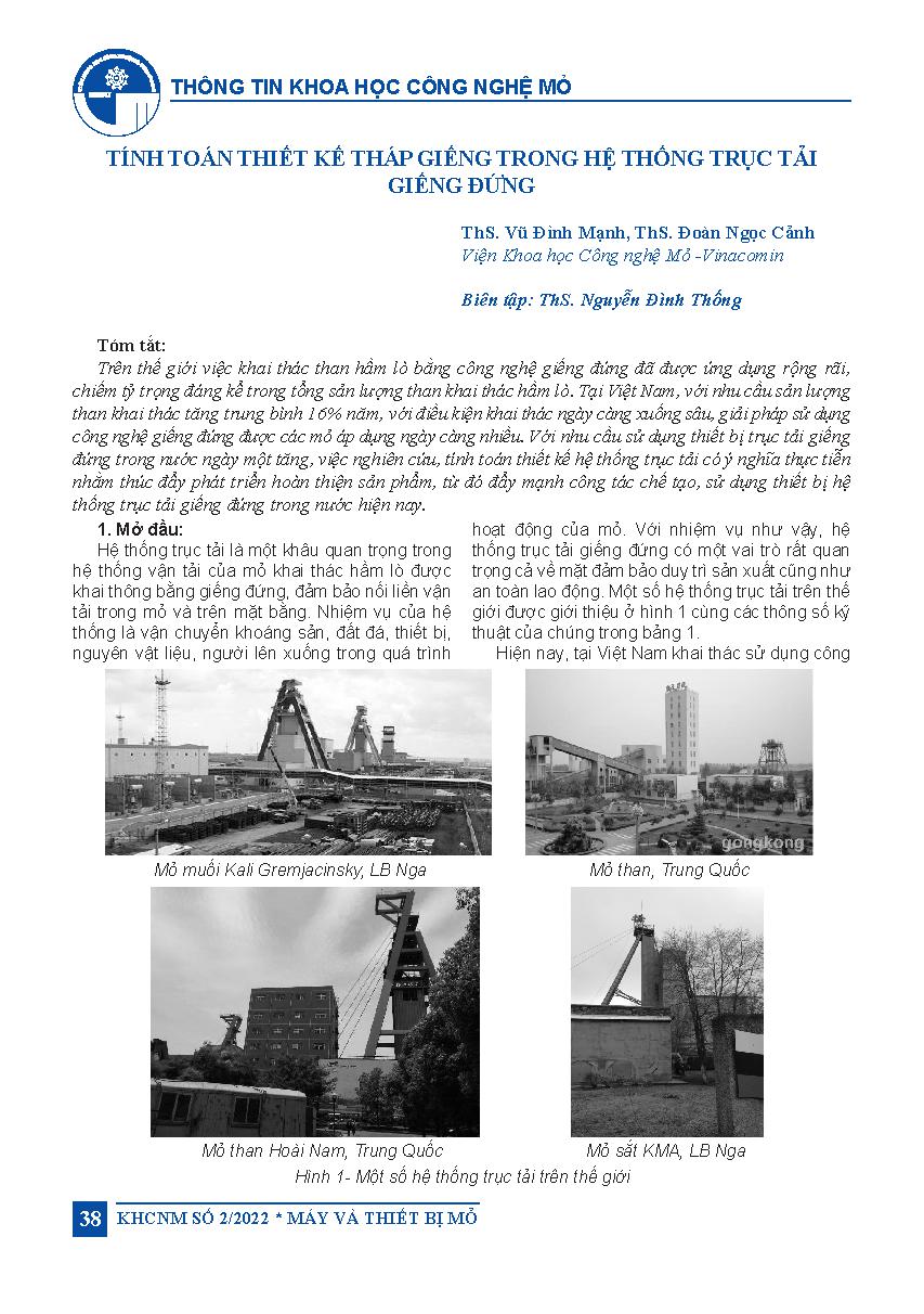 Tính toán thiết kế tháp giếng trong hệ thống trục tải giếng đứng = Calculation and design of the shaft tower in the vertical shaft system