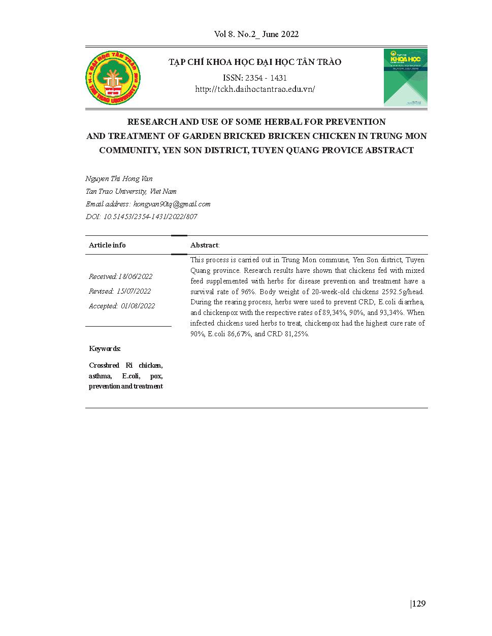 Tác giả: Đoàn Thị Vân; Nguyên Phan Lâm Quyên;