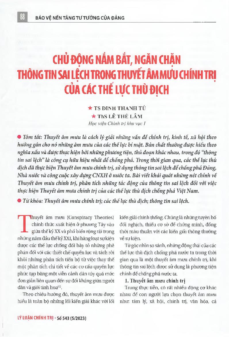 Chủ động nắm bắt, ngăn chặn thông tin sai lệch trong Thuyết âm mưu chính trị của các thế lực thù địch