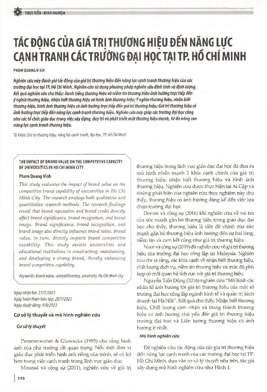 Tác động của giá trị thương hiệu đến năng lực cạnh tranh các trường đại học tại TP. Hồ Chí Minh