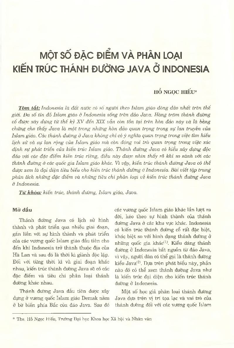 Một số đặc điểm và phân loại kiến trúc thánh đường Java ở Indonesia = Characteristics and Classification of Java Mosque in Indonesia