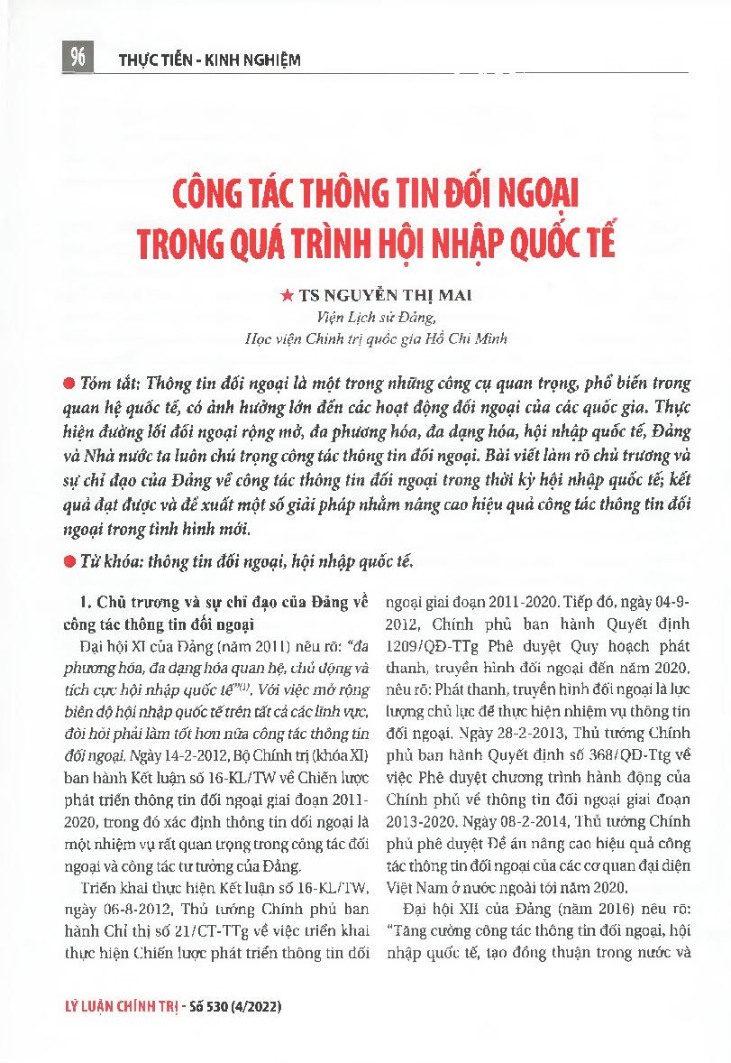 Công tác thông tin đối ngoại trong quá trình hội nhập quốc tế = External information of Vietnam in the international intergration period