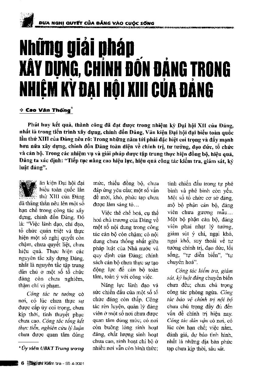 Những giải pháp xây dựng, chỉnh đốn Đảng trong nhiệm kỳ Đại hội XIII của Đảng