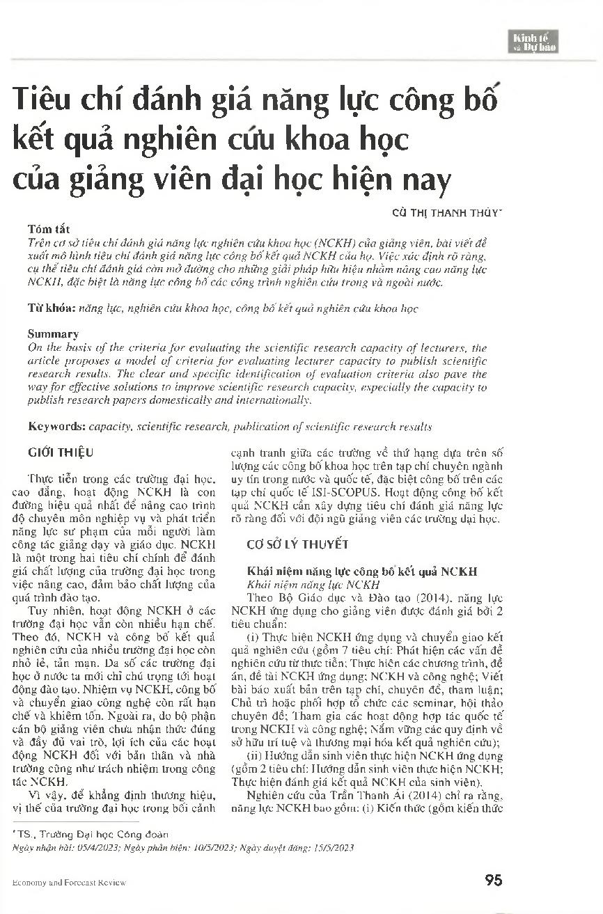 Tiêu chí đánh giá năng lực công bố kết quả nghiên cứu khoa học của giảng viên đại học hiện nay