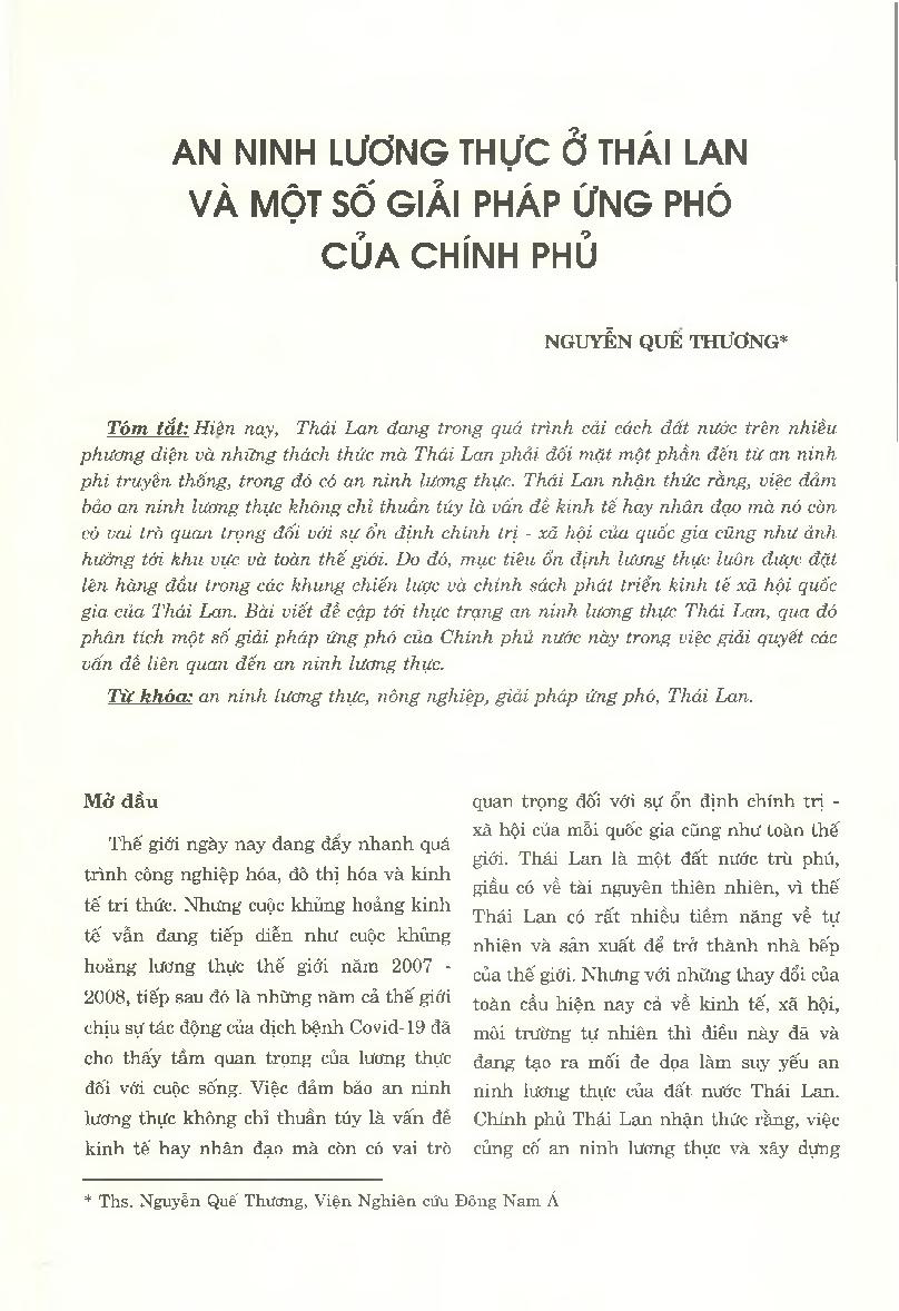 An ninh lương thực ở Thái Lan và một số giải pháp ứng phó của Chính phủ = Food Security in Thailand and Several Solutions of the Government