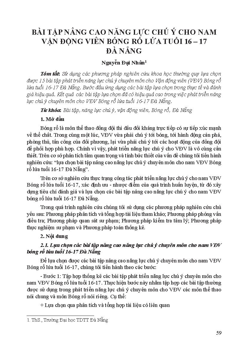Bài tập nâng cao năng lực chú ý cho nam vận động viên bóng rổ lứa tuổi 16 – 17 Đà Nẵng = Exercises to improve concentration for male basketball athletes at the age of 16 and 17 in Danang