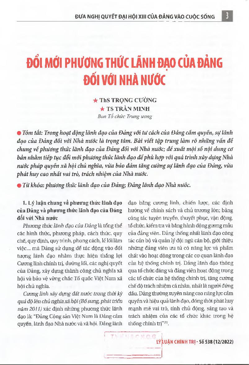 Đổi mới phương thức lãnh đạo của Đảng đối với Nhà nước