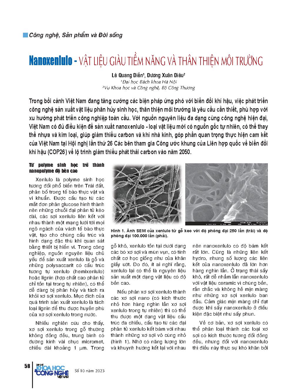 Nanoxenlulo - Vật liệu giàu tiềm năng và thân thiện môi trường