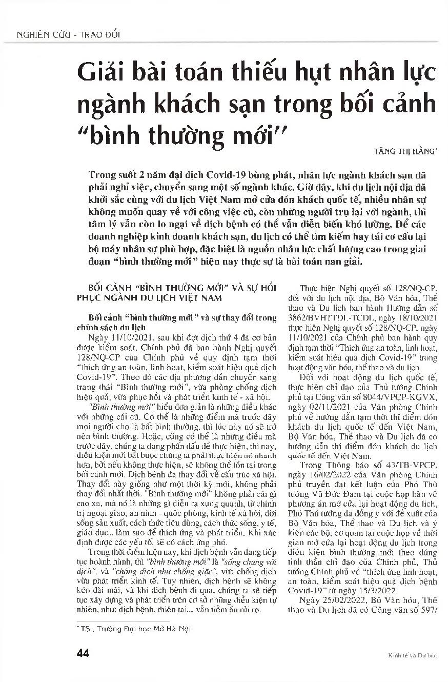 Giải bài toán thiếu hụt nhân lực ngành khách sạn trong bối cảnh "bình thường mới"