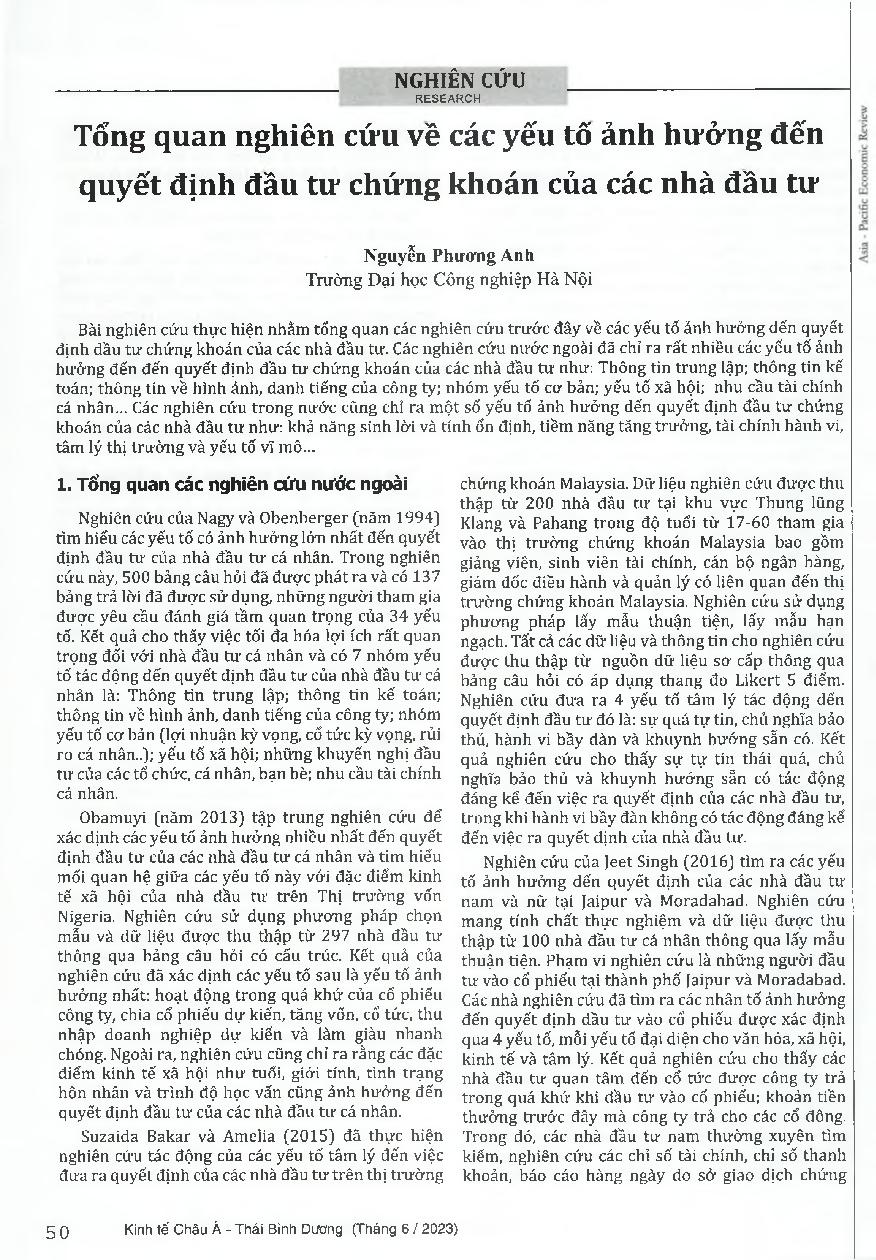 Tổng quan nghiên cứu về các yếu tố ảnh hưởng đến quyết định đầu tư chứng khoán của các nhà đầu tư