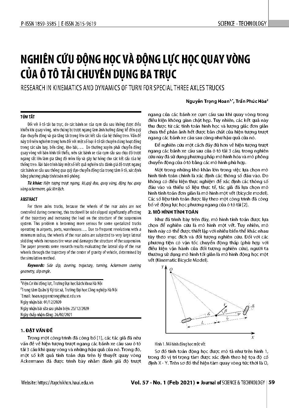 Nghiên cứu động học và động lực học quay vòng của ô tô tải chuyên dụng ba trục = Research in kinematics and dynamics of turn for special three axles trucks