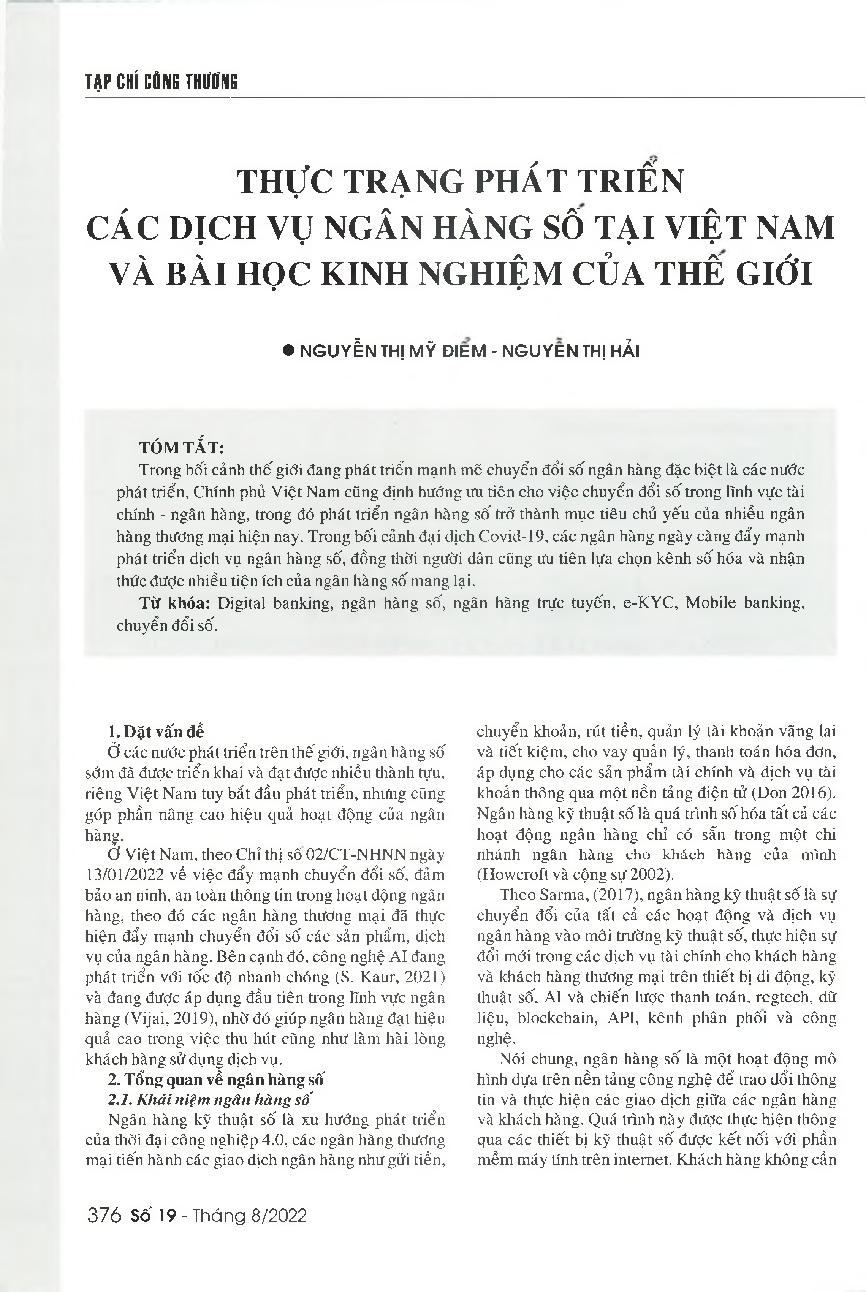 Thực trạng phát triển các dịch vụ ngân hàng số tại Việt Nam và bài học kinh nghiệm của thế giới = Current development of digital banking services in Vietnam and lessons learnt from international experiences