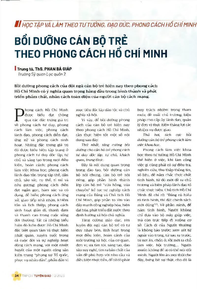 Bồi dưỡng cán bộ trẻ theo phong cách Hồ Chí Minh