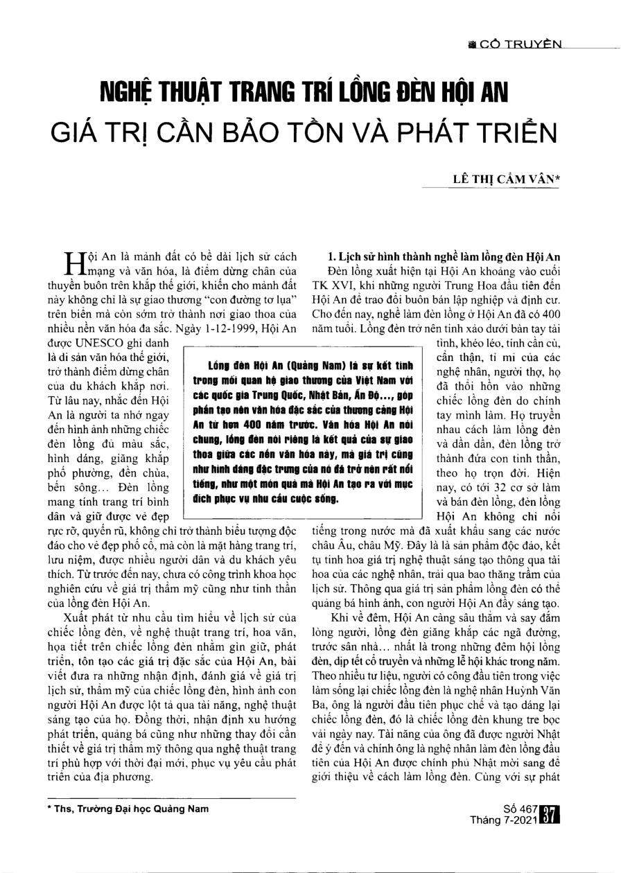 Nghệ thuật trang trí lồng đèn Hội An giá trị cần bảo tồn và phát triển