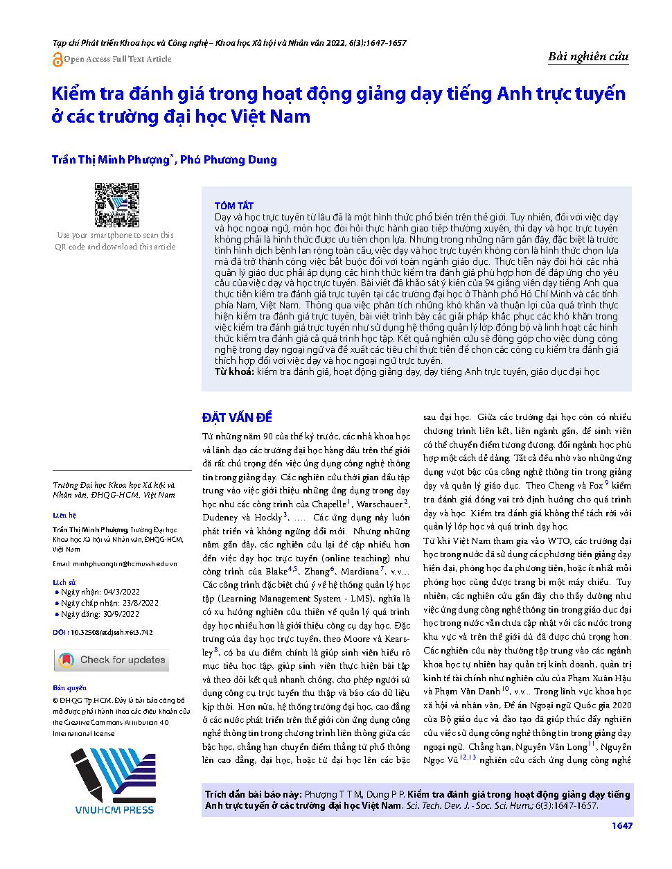 Kiểm tra đánh giá trong hoạt động giảng dạy tiếng Anh trực tuyến ở các trường đại học Việt Nam = Online assessment in English language teaching in Vietnamese universities