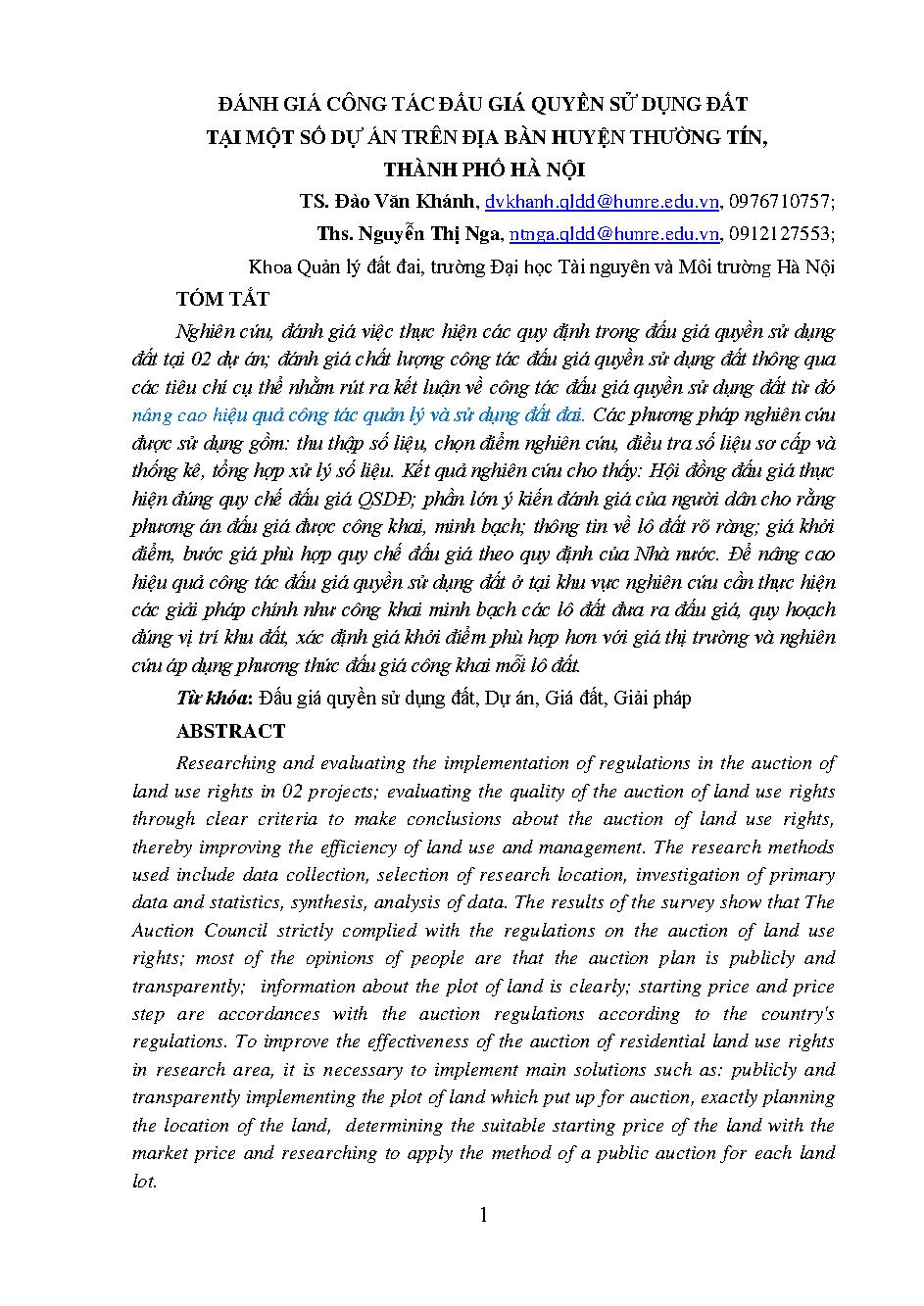 Đánh giá công tác đấu giá quyền sử dụng đất tại một số dự án trên địa bàn huyện Thường Tín, thành phố Hà Nội