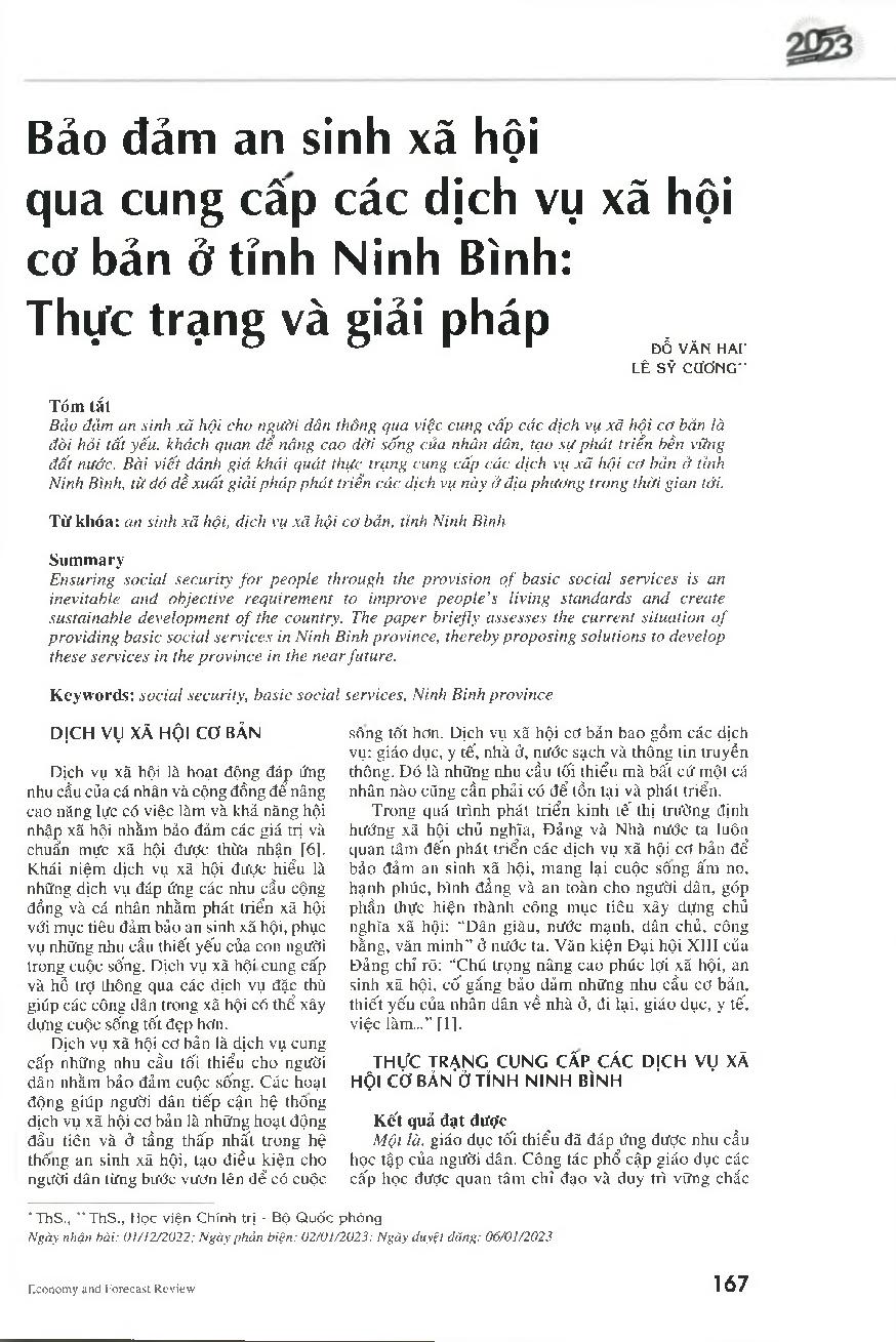 Bảo đảm an sinh xã hội qua cung cấp các dịch vụ xã hội cơ bản ở tỉnh Ninh Bình: Thực trạng và giải pháp = Ensuring social security through the provision of basic social services in Ninh Binh province: Current situation and solutions