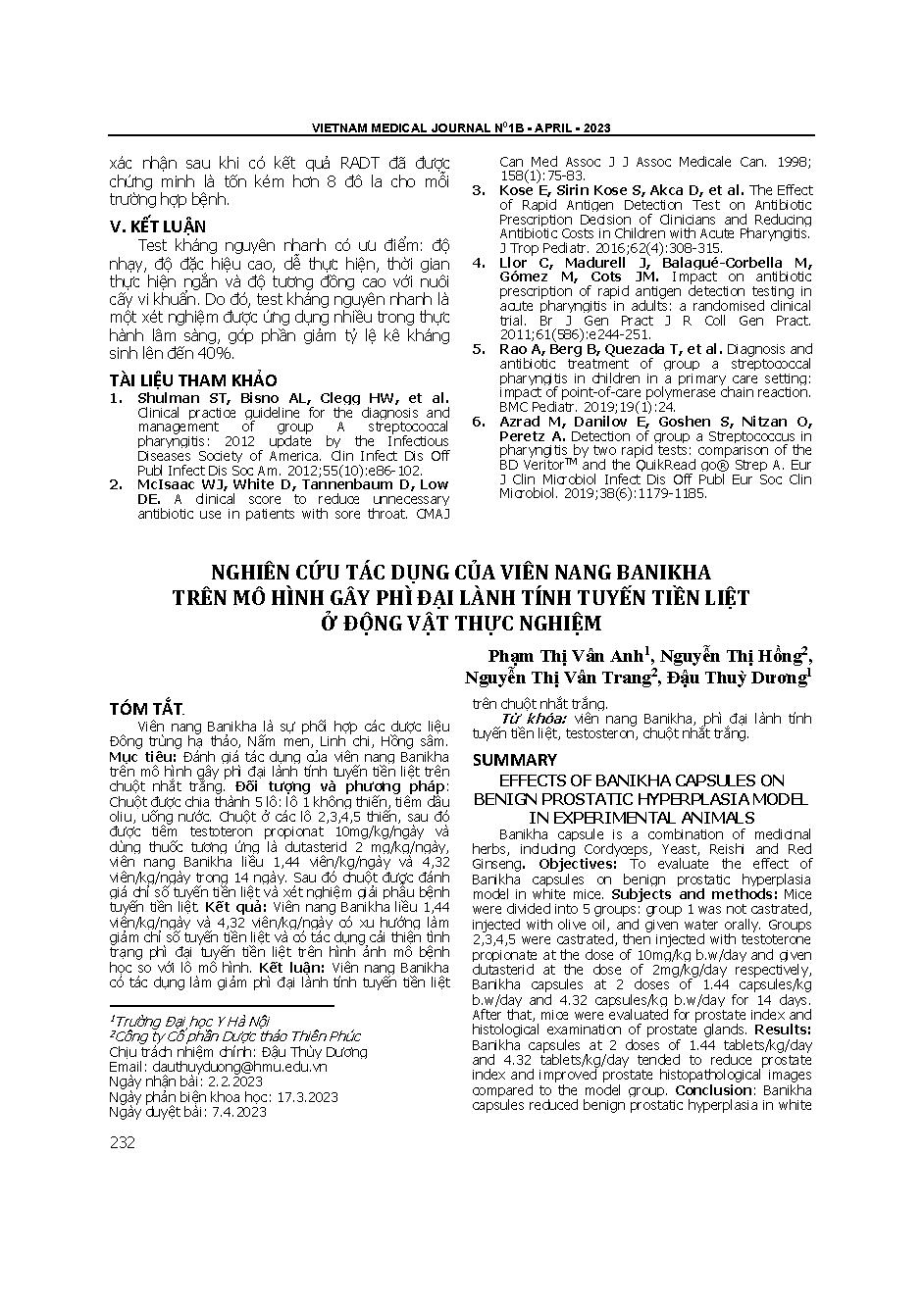 Nghiên cứu tác dụng của viên nang Banikha trên mô hình gây phì đại lành tính tuyến tiền liệt ở động vật thực nghiệm = Effects of Banikha capsules on benign prostatic hyperplasia model in experimental animals