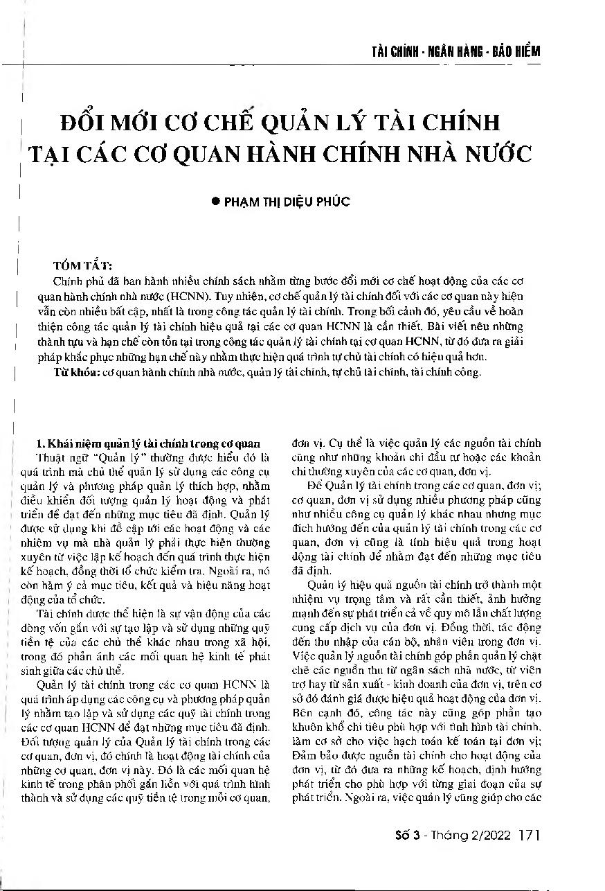 Đổi mới cơ chế quản lý tài chính tại các cơ quan hành chính nhà nước = Innovating the financial management mechanism in state administrative agencies