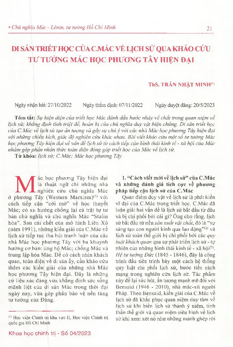 Di sản triết học của C.Mác về lịch sử qua khảo cứu tư tưởng Mác học phương Tây hiện đại