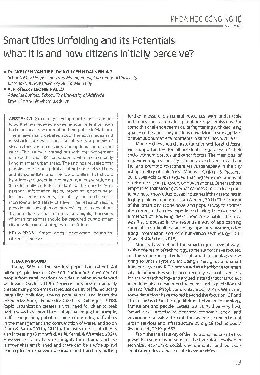 Thành phố thông minh đang mở ra và tiềm năng của nó: Nó là gì và người dân ban đầu cảm nhận như thế nào? = Smart Cities Unfolding and its Potentials: What it is and how citizens initially perceive?