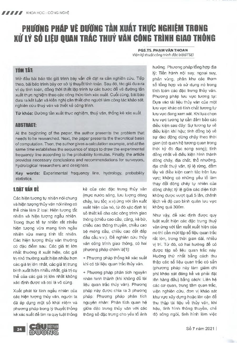 Phương pháp vẽ đường tần xuất thực nghiệm trong xử lý số liệu quan trắc thủy văn công trình giao thông