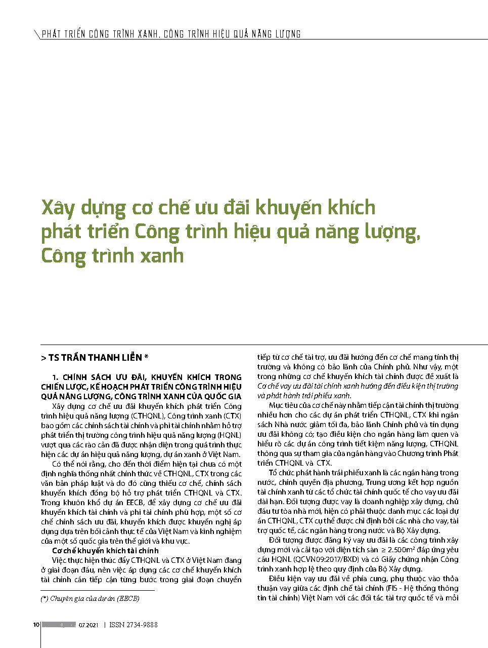 Xây dựng cơ chế ưu đãi khuyến khích phát triển Công trình hiệu quả năng lượng, Công trình xanh