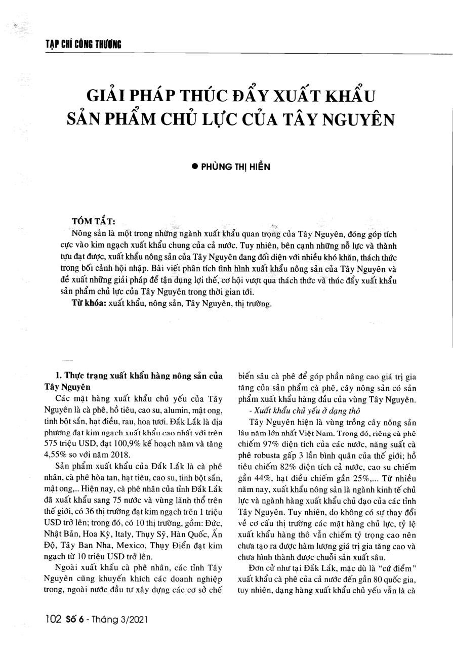 Giải pháp thúc đẩy xuất khẩu sản phẩm chủ lực của Tây Nguyên = Solutions to promote the exports of the Central Highlands' key products