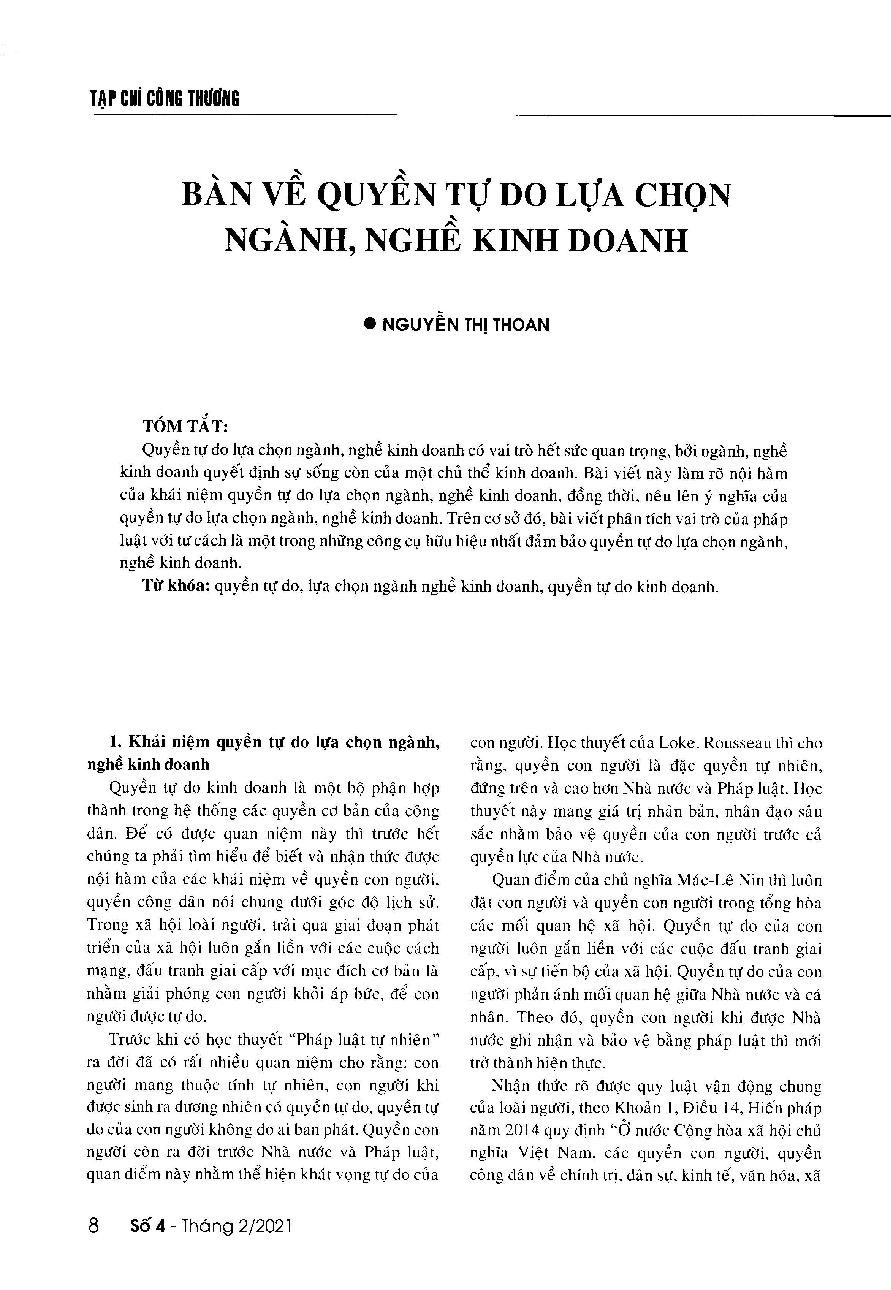 Bàn về quyền tự do lựa chọn ngành, nghề kinh doanh = Discussing the freedom to choose a business field