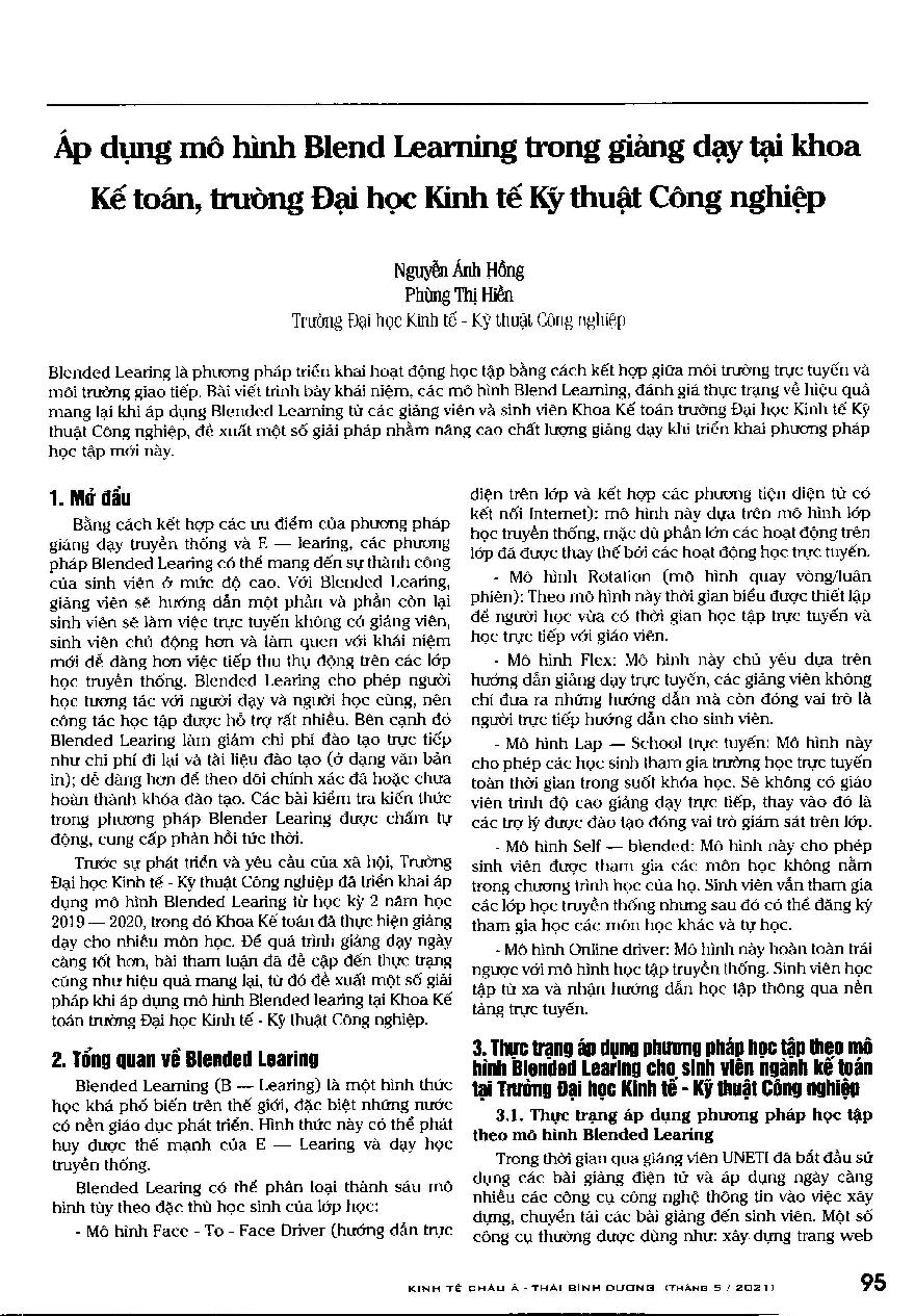 Áp dụng mô hình Blend Learning trong giảng dạy tại khoa Kế toán, trường Đại học Kinh tế Kỹ thuật Công nghiệp